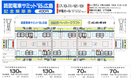 - (広島電鉄)阪神大震災で観光客が減ったが下げ止まり前年比プラスに転じた。電停の美装化を進めている。また本年も3連接車を製作中で宮島線から市内線に直通仕様のものである。5月の花電車、クリスマス電車等も実施中。