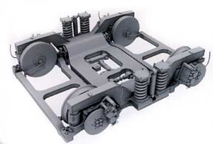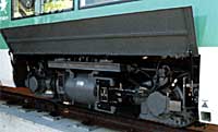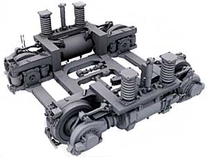 | AB車用の駆動台車は通路巾が取れる独立懸架式。モーターや駆動装置は車輪の外側になっているが、メンテナンス性を高めるため、脱着が容易な構造になっている。 | ||