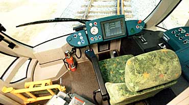 | 操作性を高め、安全性を向上させるためにスイッチ一つに至るまで人間工学的検討をし、モックアップを作り検討をした。運転視界についても大きな正面窓に加え左下方に窓を設けて視界を確保。 | ||