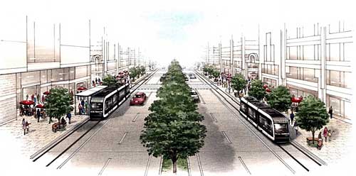 | 宇都宮市と芳賀町が推進するLRTの運営を担う第3セクター方式による新会社の発起人会が10/23、宇都宮市役所で開かれ、運営会社の名称を「宇都宮ライトレール」にすることや、会社への出資額などの定款案が承認された。 新会社は11/6に設立総会を開く予定で、社長には高井徹副市長、副社長に芳賀町の上野哲男副町長が就任する見通し。 運営会社の出資割合では、資本金1億5000万円のうち宇都宮市が6120万円(40・8%)、芳賀町が1530万円(10・2%)と、両市町で51%を占める。 民間では、関東自動車が1500万円(10%)、東武鉄道が600万円(4%)、東野交通が150万円(1%)を出資するほか、宇都宮商工会議所、芳賀町商工会、栃木銀行、足利銀行がそれぞれ出資する。 これとは別に、民間企業26社が民法上の任意組合を結成し、それぞれ100万~300万円を出し合って計3420万円(22・8%)を出資する。 職員数は当初、数人で立ち上げ、開業時に本社、運転、工務部門など合わせて99人体制に増やす計画。 路線は当面、市中心部のJR宇都宮駅東口から大通りを東へ進み、鬼怒川を越えて市東部の宇都宮テクノポリスセンターに至る12kmを優先整備する。宇都宮駅前付近は片側3車線の道路中央部にLRTの路線を敷き、乗り場を設置する。 市は宇都宮駅から栃木県庁や市役所、東武宇都宮駅付近を通り、桜通り十文字まで3kmの整備構想を持っており、東側の運行実績を見たうえで検討する。 |