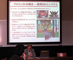 各教室における研究発表会の個別発表の様子 ここでは仏ラガリュさんが自国都市例を発表中 |