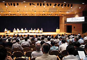 | 午後のフォーラムは4人の講師による基調講演と 京都市民パネリスト8人によるディスカッション風景 |