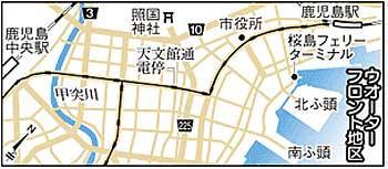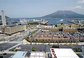 | 鹿児島市のウオーターフロント地区。 市電の観光路線新設が検討される。 |