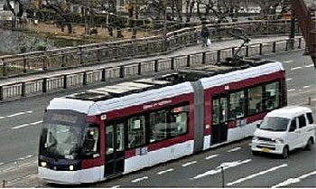 | 市内を走行する熊本市電9700型 (Photo:西日本新聞) |