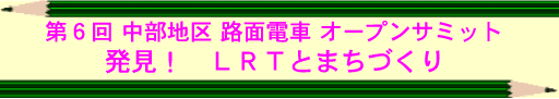 ・公共交通を意識した沿線の変化 ・LRTがもたらした住民意識とまちづくりの変化 ■次回開催地発表 ・・・関市 (注)路面電車の無い町で実施は初めて。 RACDA高岡の出前応援にて実施するという企画 (参考)今までの中部地区サミット開催地とテーマ 2002/7 豊橋市 路面電車を活かしたまちづくり 2003/11 高岡市 人がまん中まちづくり〜軽快都市宣言 2004/7 岐阜市 路面電車のあるまちの未来を描こう 2005/11 福井 路面電車が街をつくる 人が中心の街づくりをめざして 2006/6 豊橋 市 親しまれ利用される路面電車を目指して ■交流会 (17:25〜19:30) |